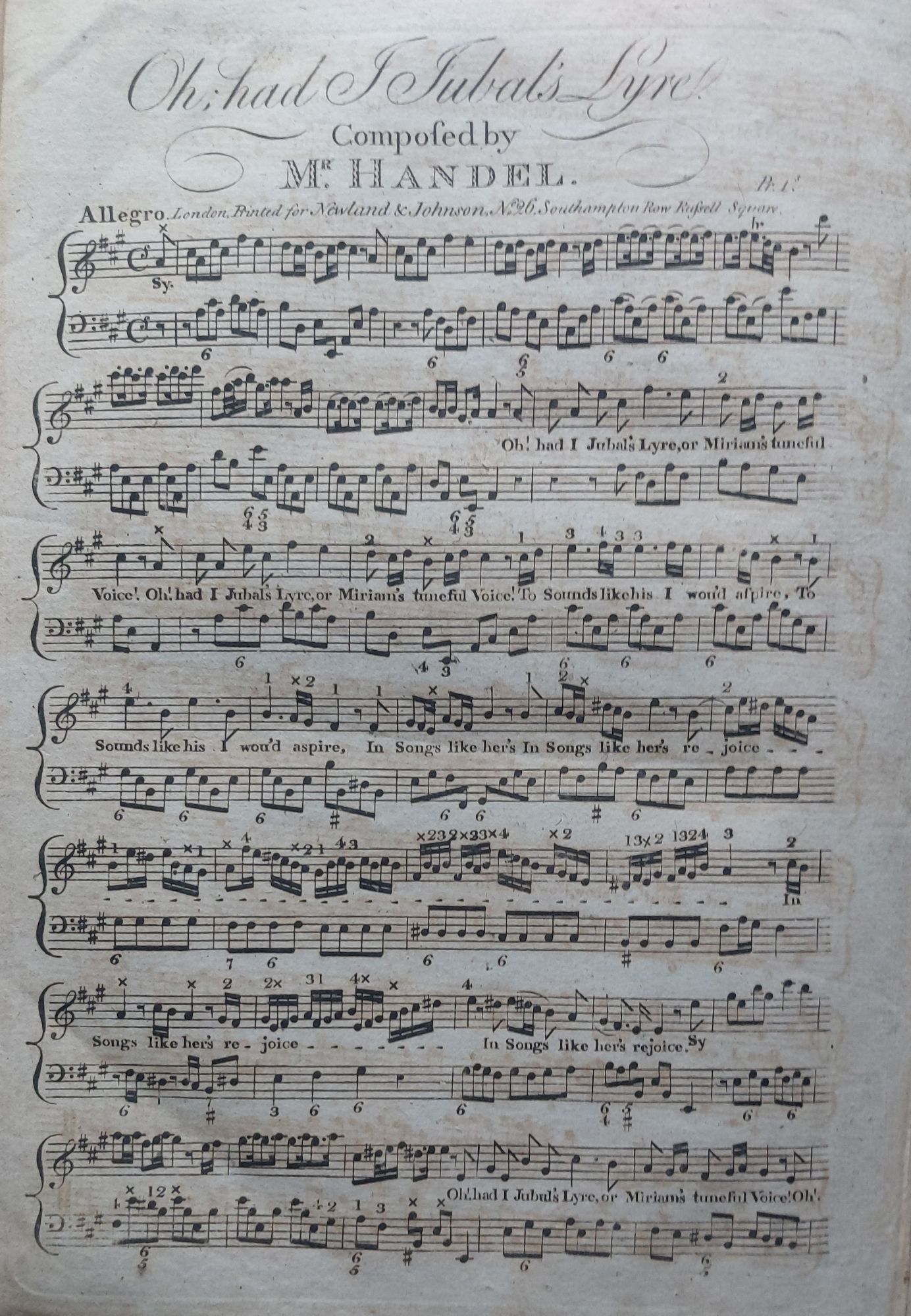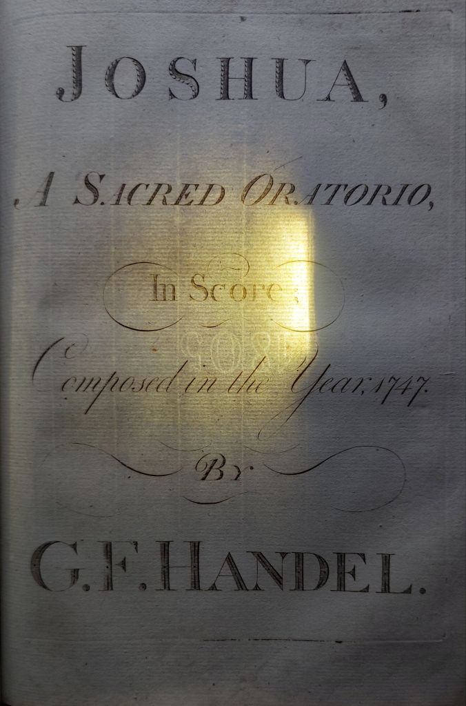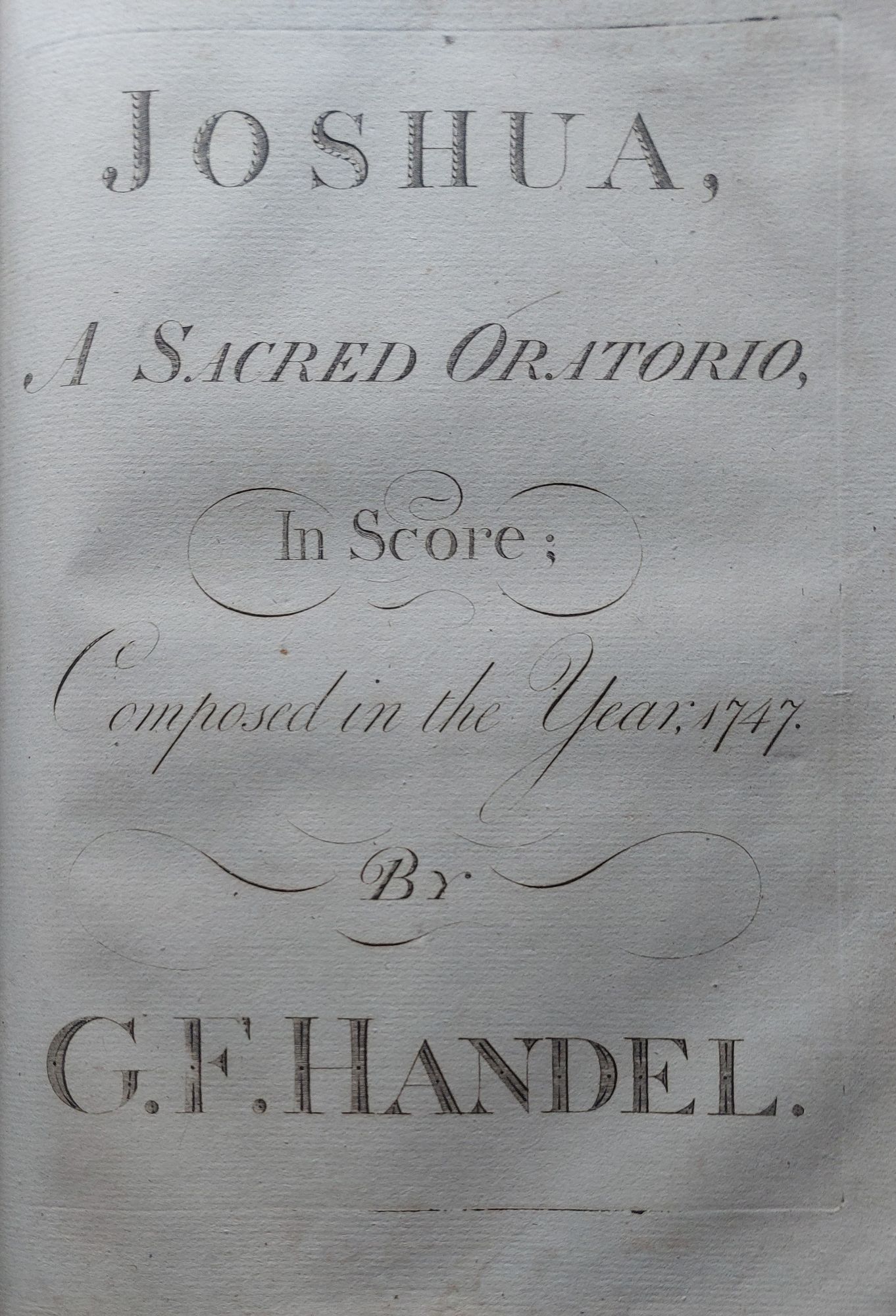 The book I purchased contains the full #Messiah score arranged for voices and pianoforte, the oratorio #Joshua in full score, and two songs ‘Lord, remember David’ and ‘Oh, had I Jubal’s lyre’ as separate publications.