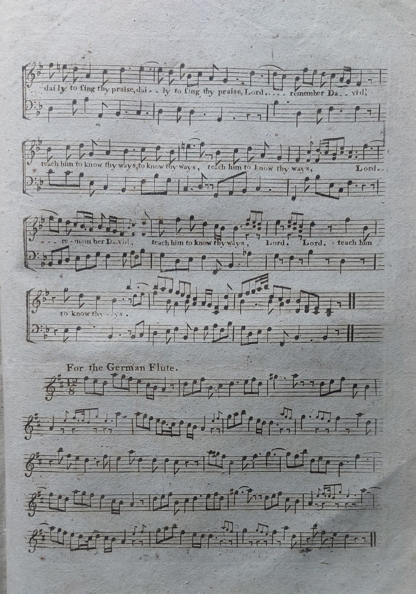 Most of Walker’s music was printed on a blue tinged paper, which was then in great use. The only piece done in this colour paper in this book is Lord, remember David the rest are done on cream colour paper.