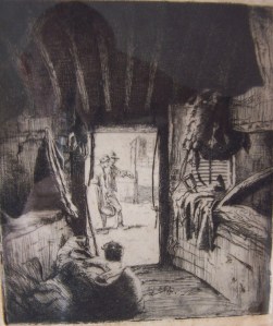 We begin with an etching of a couple walking past a barn door on their way home at the end of a long day. It is by E Herbert Whydale 1886 1952.