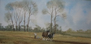 The life of farming is hard but many farmers now have machines to ease the load. Where I grew up, we had close by a group of people called Mennonites or Amish. They farm not with huge hulking machines but with horse and hand. A people who choose not to be laden with the ever crushing burden for ‘bigger and better’. They choose a simpler life close to the land. A harsher, more demanding life but one likely more fulfilling. They work hard. They rely on their relatives and neighbours for assistance. They work together as community to overcome the obstacles which are blocking their path. It is an amazing and possibly even wondrous thing to watch these people at a barn-raising as I have done. Working together as a body they are able to do far far more than we with our huge machines. We could not build a barn in a day but they did. It is a simpler life but harder life. I do at times envy their life as I watch myself run from here to there after some inconsequential thing I’m told I must have. Nick Grant captures so well the charmingly rustic life from the north east of England(Nottinghamshire and area). He brings a sense of tranquillity and a wishful feeling of needing to be in that place. Such is his rendering of image, subtle shading of colour and use of light in his paintings that they evoke this desire for a different life, an easier life;maybe/maybe not, but surely a better one.