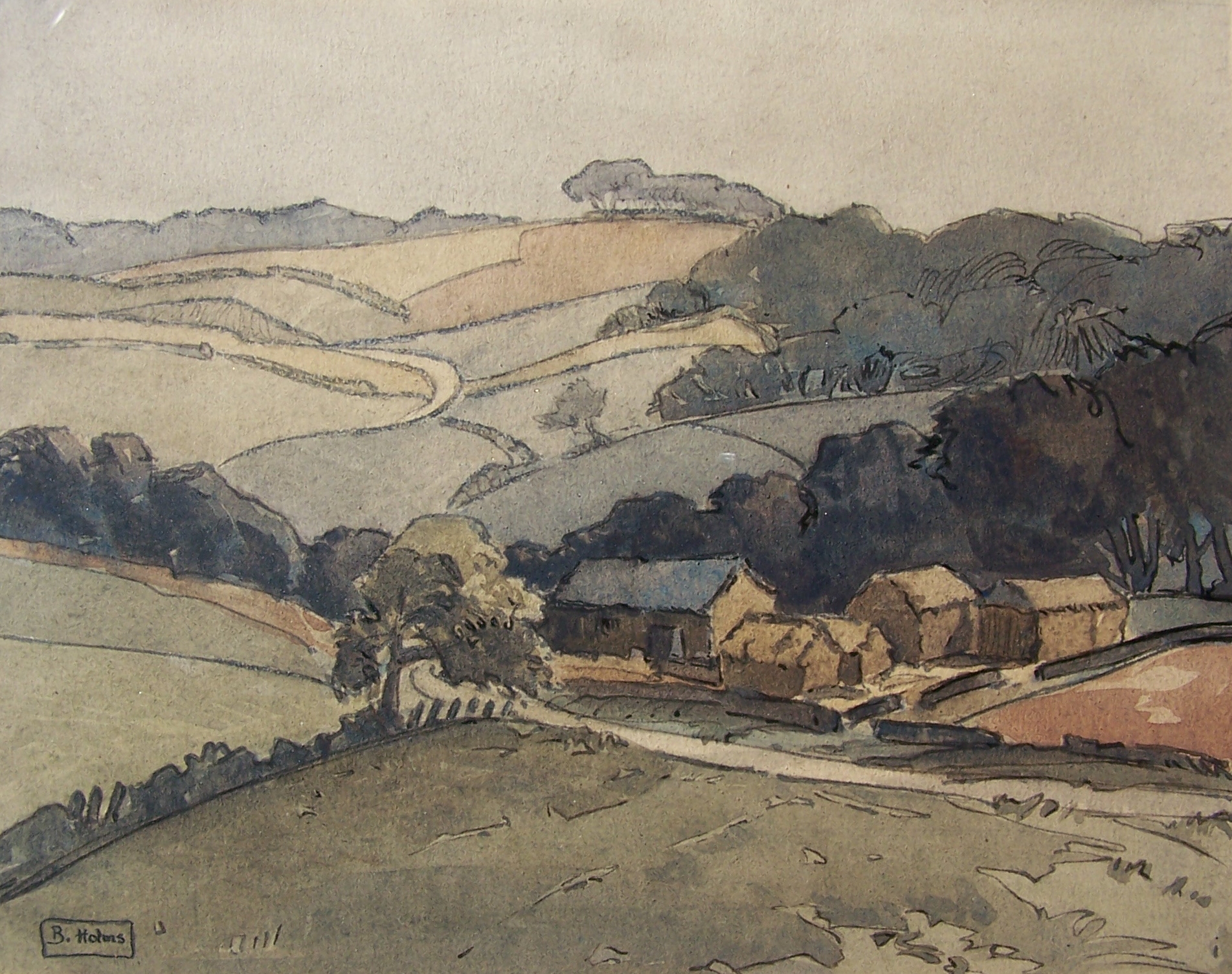 The first is what I consider to be a lovely and evocative watercolour by Beatrix Holm. This scene reminds me very much of some dear friends who have moved to Wales and live in countryside much like what is pictured here. Rolling hills, farms, winding roads, and copses. There are no sheep in this picture but there are where my friends live. An idyllic place into which one can see oneself retiring after ones working days. Walk the hills, enjoy a picnic lunch, watch clouds sail by, rest, relax and feel the wind on your face, the vitality of life which surrounds you and then to home to revel in and absorb the experience which you have just had. An experience one could have every day.