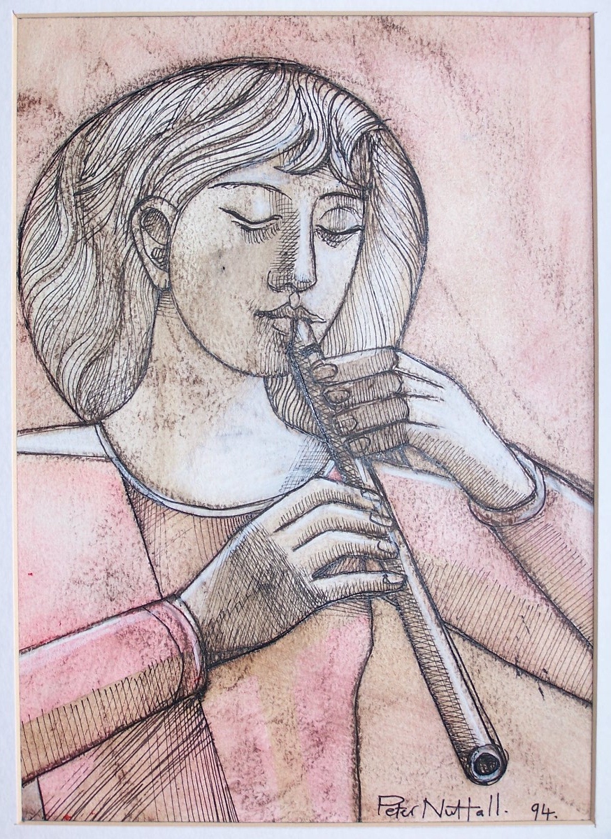 Peter Nuttall (1943 – 2011) was born in Blackburn. He studied at the Maidstone College of Art where he developed his unique drawing style, his distinctive colour palette and his use of mixed media. His art in ways is surrealistic and yet in others is very baroque. Much of his art embodies the spirit of the north of England – he being a Lancashire lad. The earthy tones in his colouring of his works gives the subjects a solidity a firmness as if from rock they are drawn. A beauty expressed in a moment of melancholy. A day dream caught in its’ passing. A reflection of the real and yet with so much depth beneath it.