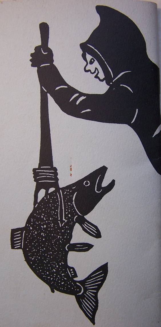 One might consider that with a name like ‘the Ungava’ that this chapter might be about a place in Africa but ‘Ungava’ is actually found in northern Canada. I came across a booklet or catalogue in my travels. It’s focus is the artwork of #TiviEtook. He cuts into stone the images portrayed here and then inks and prints. These stone cuts burst with vibrancy, for they show us not the ordinary caribou and men, but the great sharp-horned spirits-torngat that guard the swollen rivers and the tundra plain.