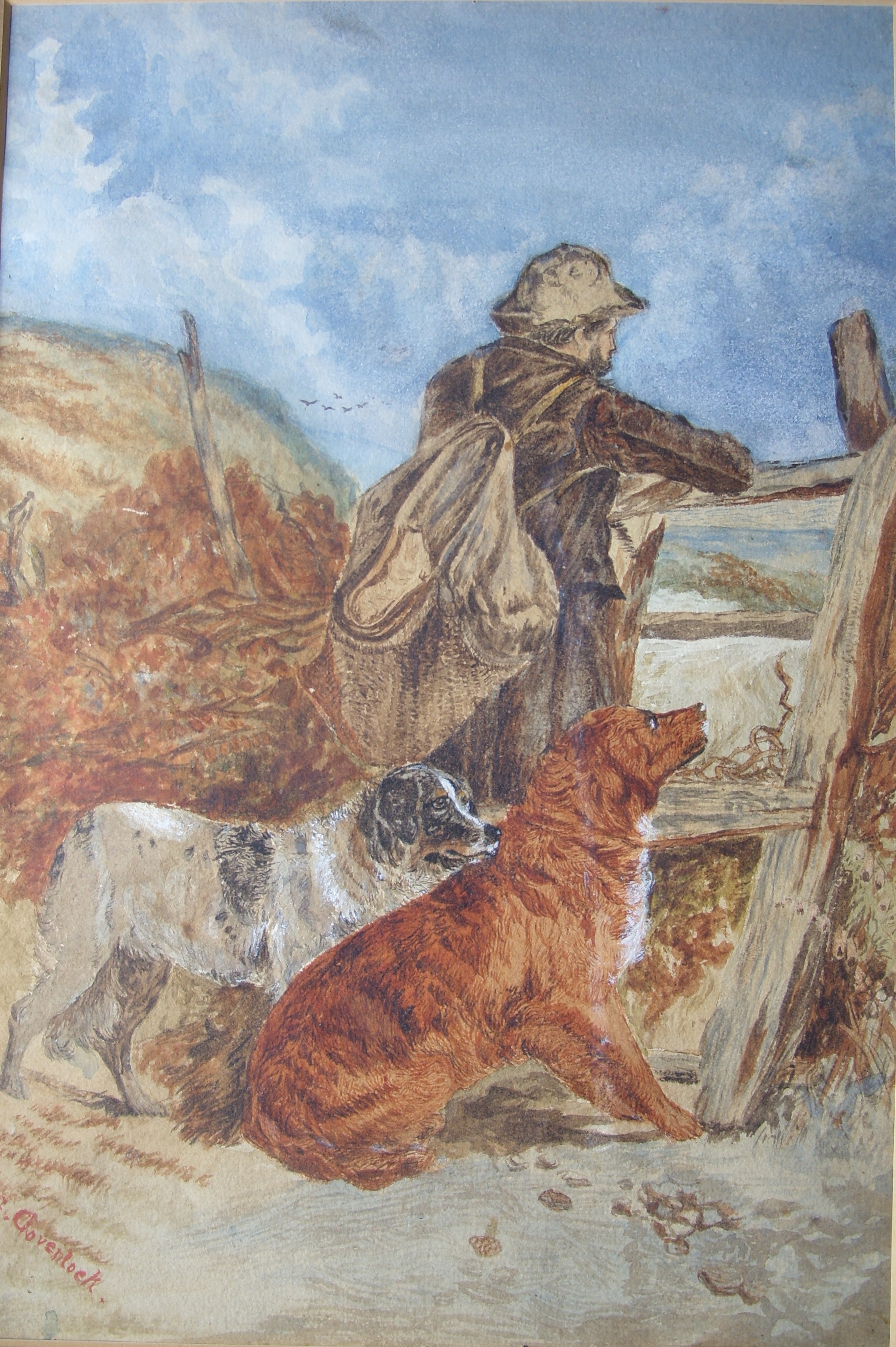 ‘Man’s best friend’ has worked in coordination for centuries. Hunting, herding, befriending, guarding are all jobs which dogs lovingly provide to their masters. The pair of setters to the left are performing something they would do naturally but they do it in conjunction with their master. This watercolour in it’s warm autumnal colours and lovely depiction of a pair of hunting dog is ‘after #ReubenWardBinks’. Mr. Ward Binks was one of the foremost illustrators of pure bred dogs. He travelled the world to perform commissions for dog owners and worked for some of the most influential people in the world.