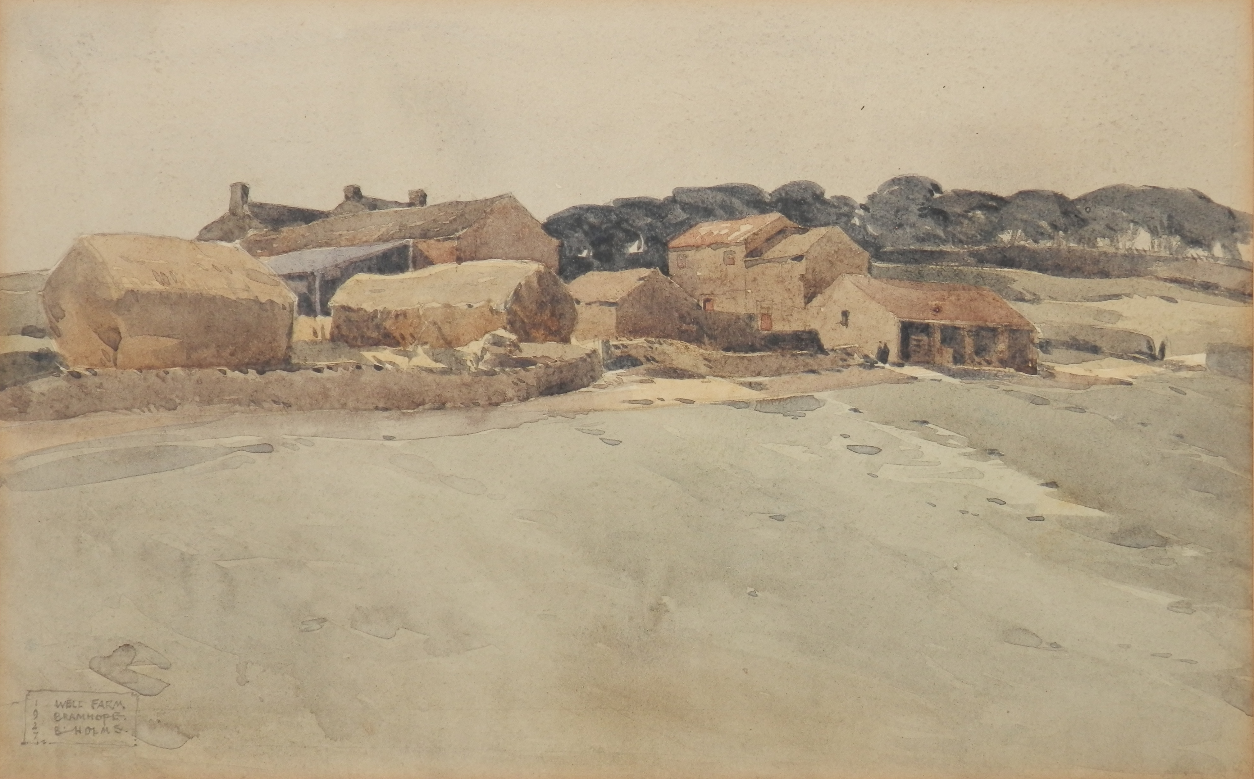 I give you, #WellFarm by #BeatrixHolms. The third piece in my collection by her. From this piece and the other two, I can more surely surmise that Beatrix was a Yorkshire lass living in the Leeds area in the early 1900s. As shown, this is Well Farm on Black Hill. It no longer looks anything like this today – for in the 1930’s a large complex was built along side the farm. Golden Acre Park was once a large pleasure park, officially opened in March of 1932. Motor launches, rowing boats and dinghy’s sailed the length and breadth of the lake whilst in the centre stood a large tower from which music and announcements were relayed. Around the lake (a distance of just over a mile) ran a miniature railway connecting the many attractions (including the open air swimming pool, Helter Skelter, and a Zoo) to the rest of the park. The Park closed after a relatively short life at the end of the 1938 season and lay derelict until 1946 when the land was purchased by Leeds City Council. It now consists of approximately 55 hectares of gardens and mature woodland surrounding an attractive lake which is home to many species of wildfowl. I think Beatrix would like what it has become today.