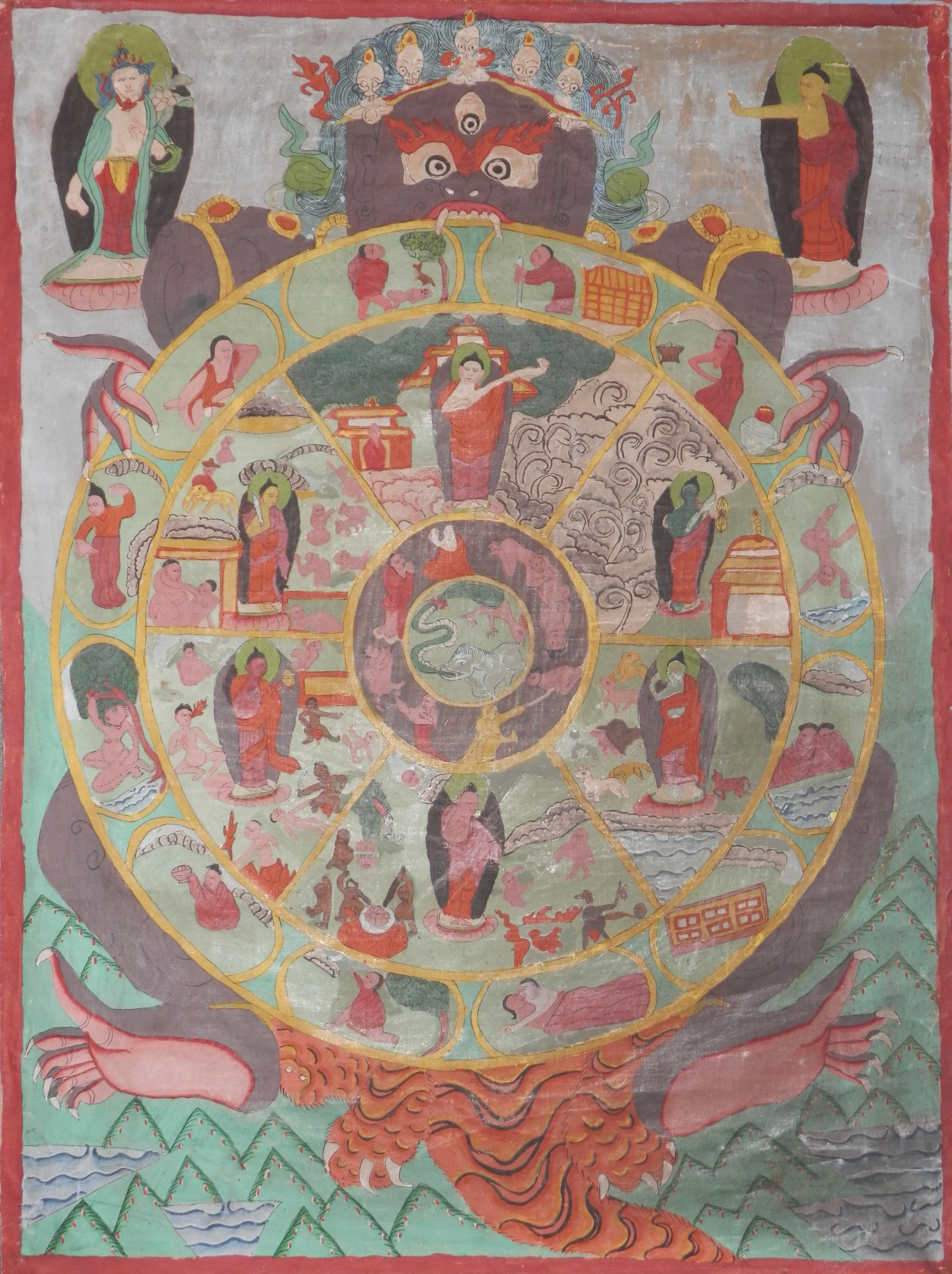 The #WheelofLife to the left is crude and naive. It lacks the finesse and intricacy of many thangkas which are seen today as well as in the second of my thangkas.