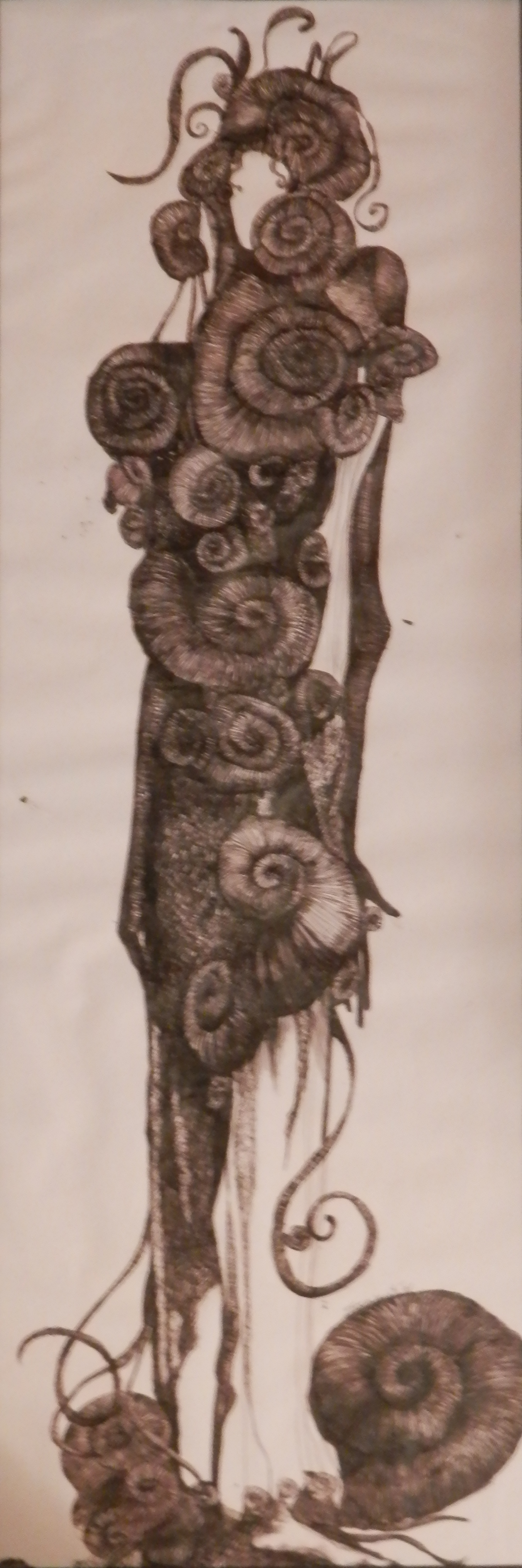 A pen drawing to begin with by #Fioraventi. Made of multitudes of spirals – seemingly random and yet to me I see a human form in the length thereof. A design for a super-models catwalk attire or the doodling of a restless mind? Even in its’ uniqueness, I find grace and ingenuity, design and randomness, obscurity and clarity. A piece that does say look and see what I am, what I might be, what I can be. I leave those answers to you for they are for you to decide.