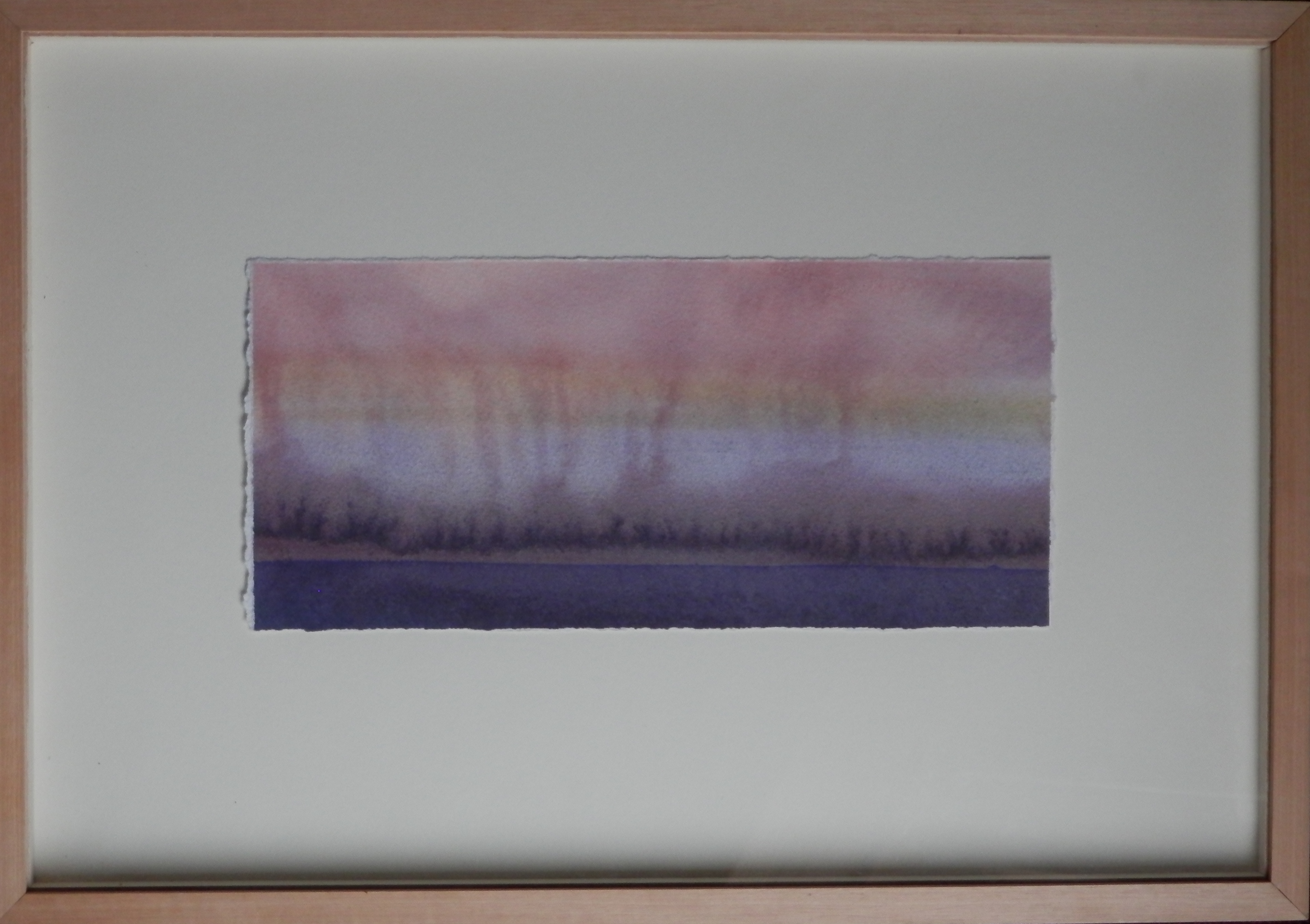 Next a watercolour of a face – no not face but a head and neck. One person or three? Undefined yet, certainly, it feels as if they are looking at you. Ochres, oranges and browns give warmth and not menace to these who look outward.