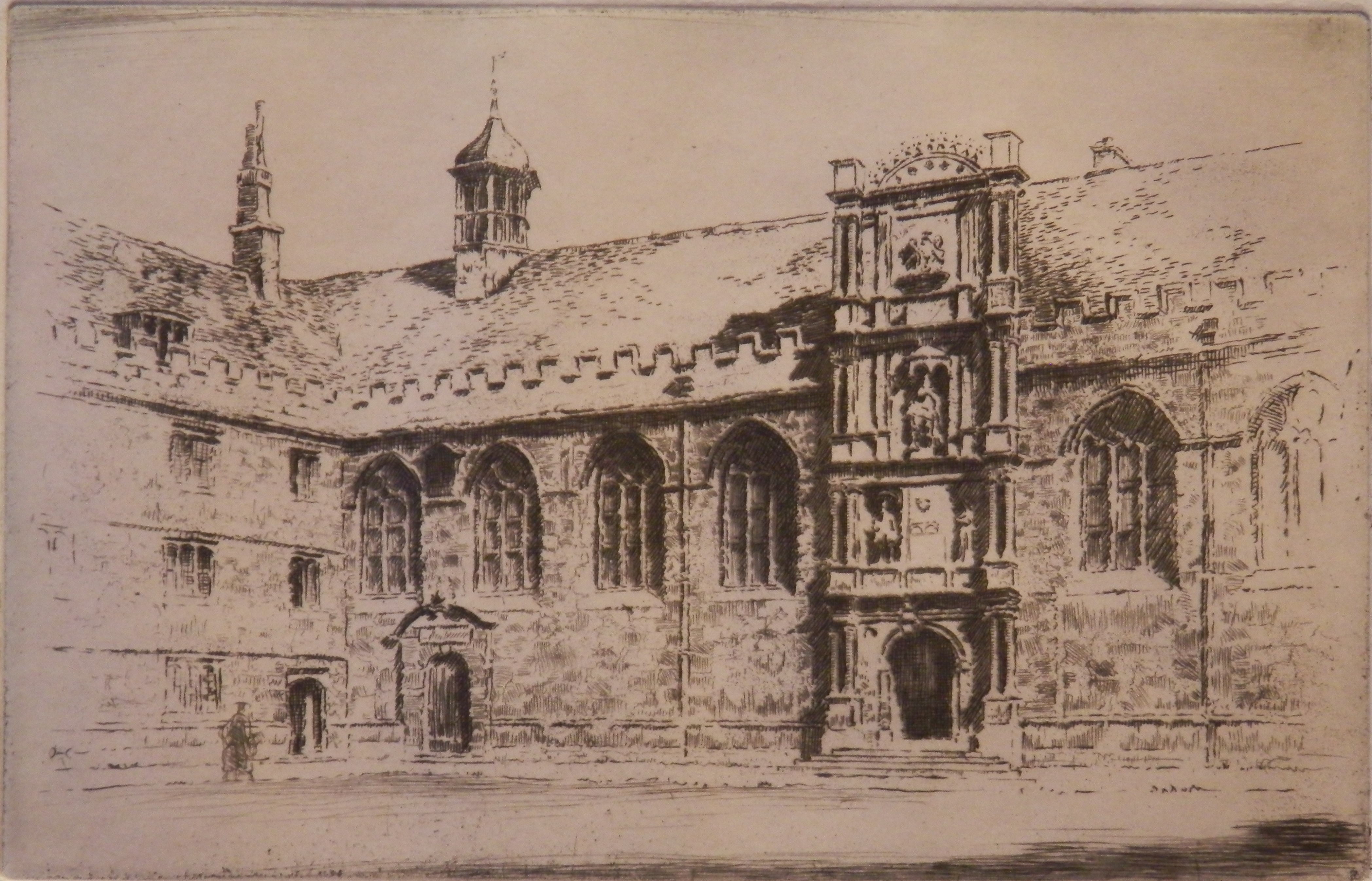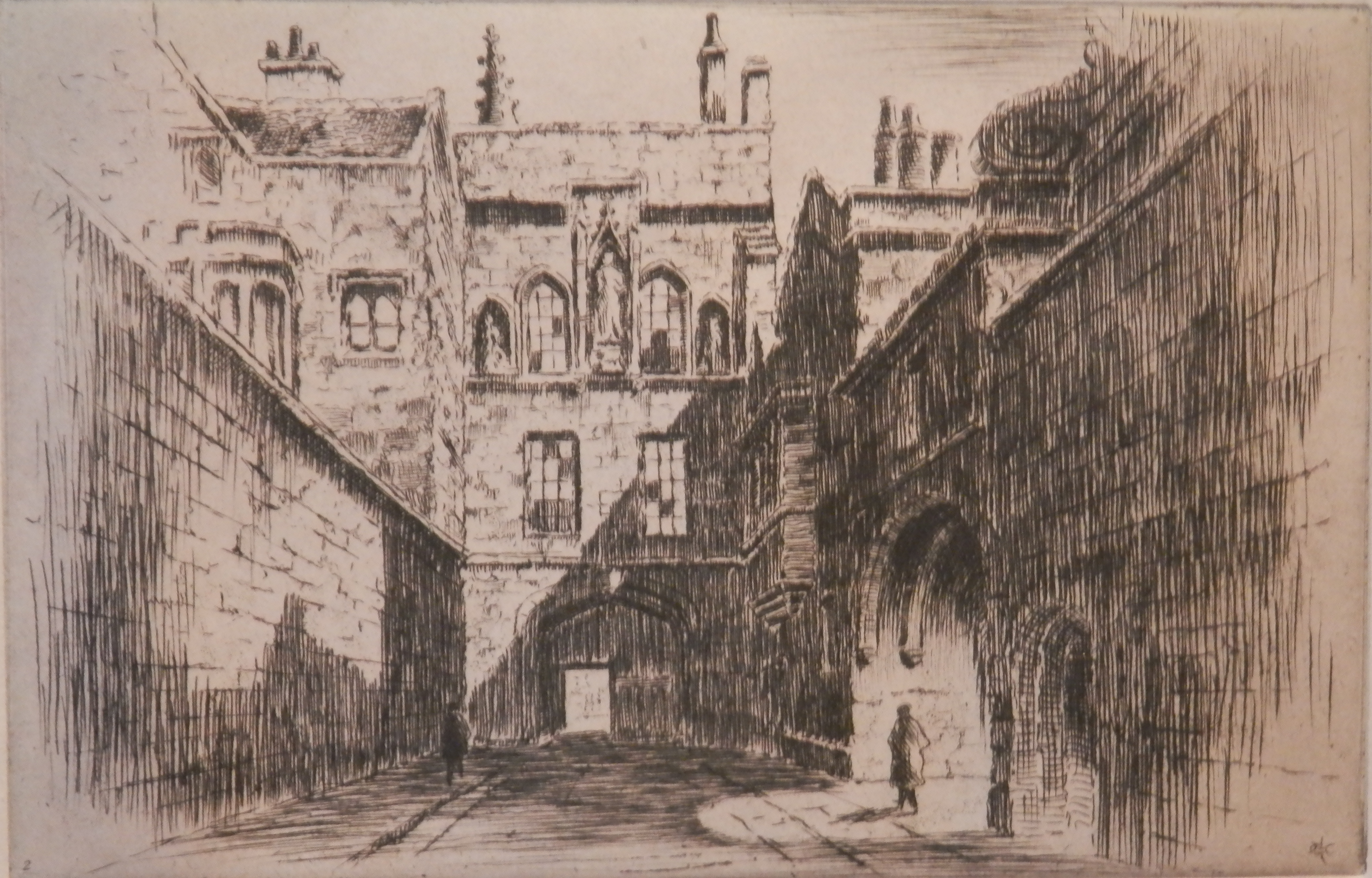 The six etchings in today’s chapter are all of Oxford and the colleges within it’s bounds. Having been to Oxford, I can attest to the accuracy of his renderings. They are fine examples of Huardel-Bly’s talent.