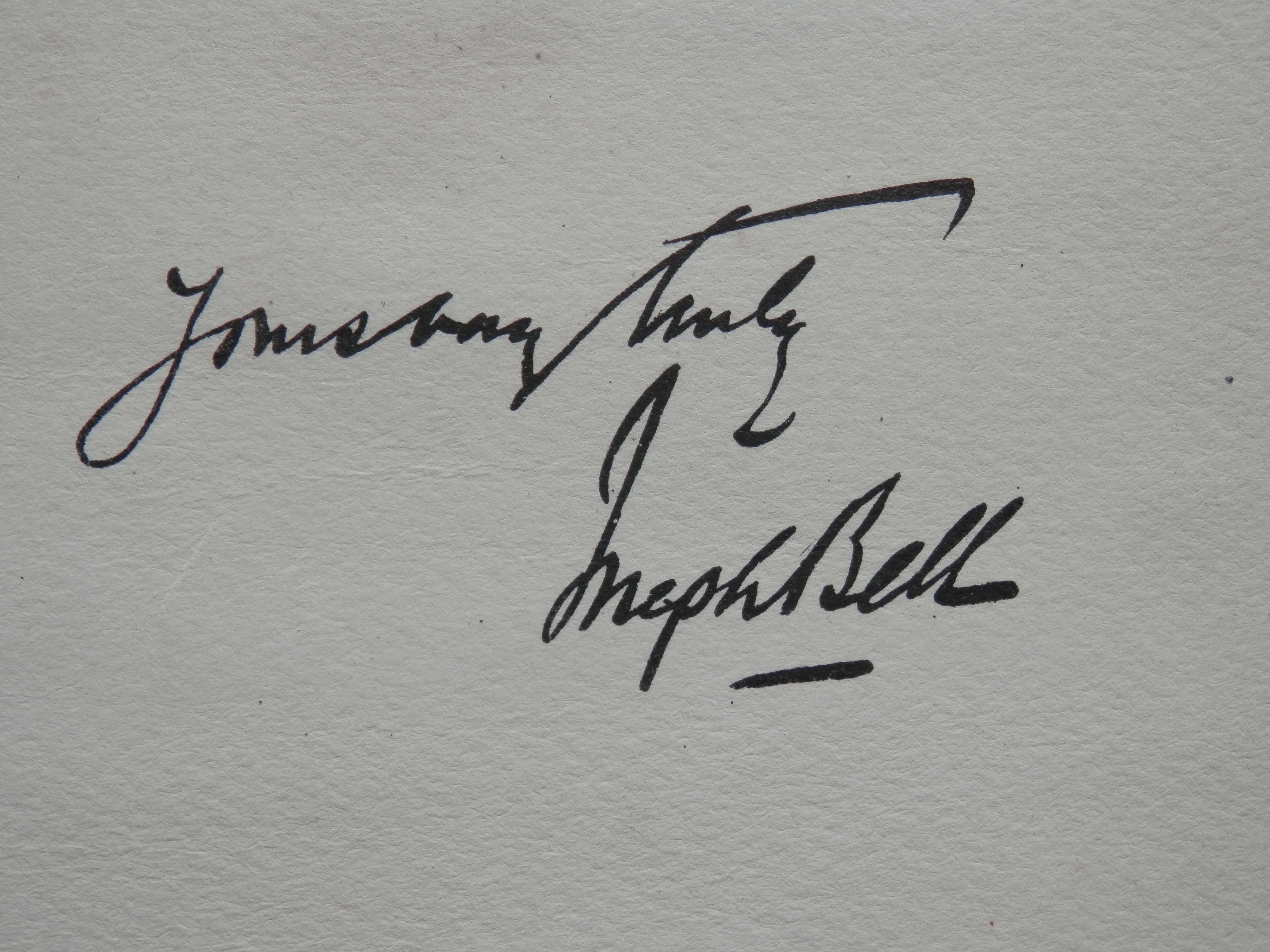 Signed in ink. It reads ‘Yours Very Truly – Joseph Bell’. A lovely aquatint with the image of a very famous person both real and fictitious.
