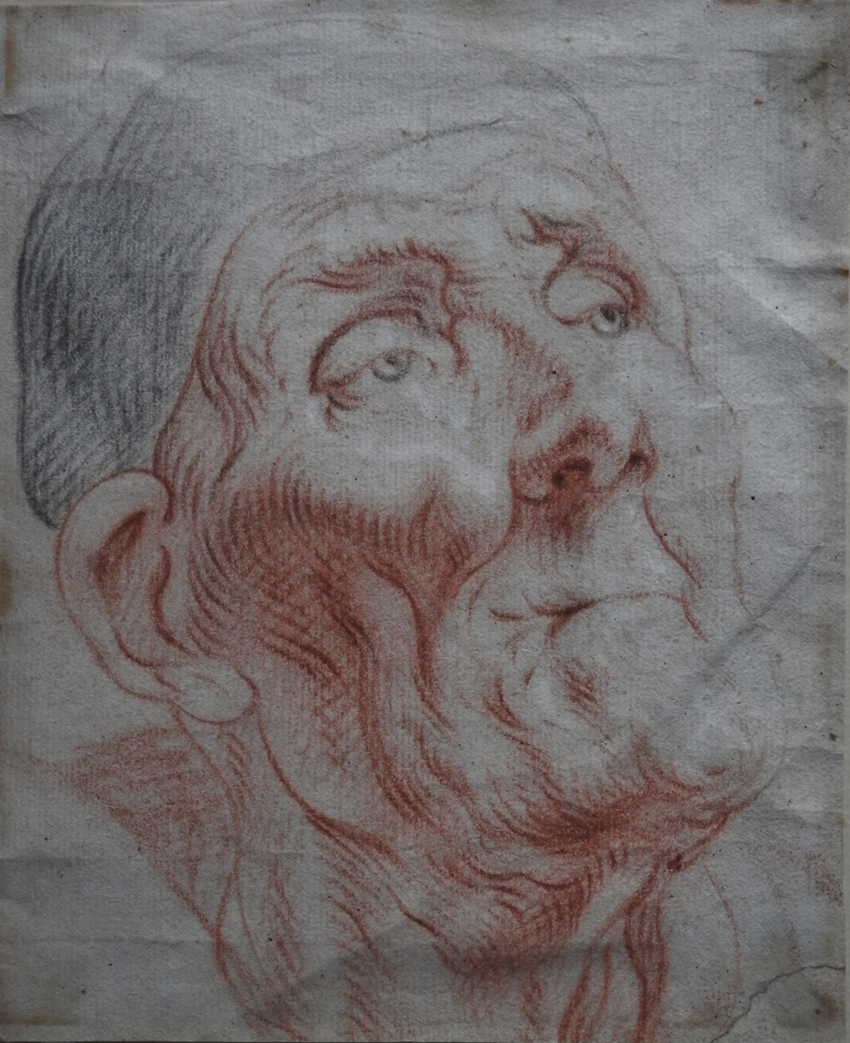 A study of a man’s face which has such depth of emotion. A figure aged in years with wisdom and knowledge in his eyes. An old man – such nobility in his countenance. Antoine with just a few lines and shading produces an image of breadth and intensity. The black and red chalks were the staples of his drawing studies which he used to prepare for his oil paintings. I do not know in which painting this face appears but the wealth of power and feeling in this small illustration must bring us to a finished painting of awfulness.