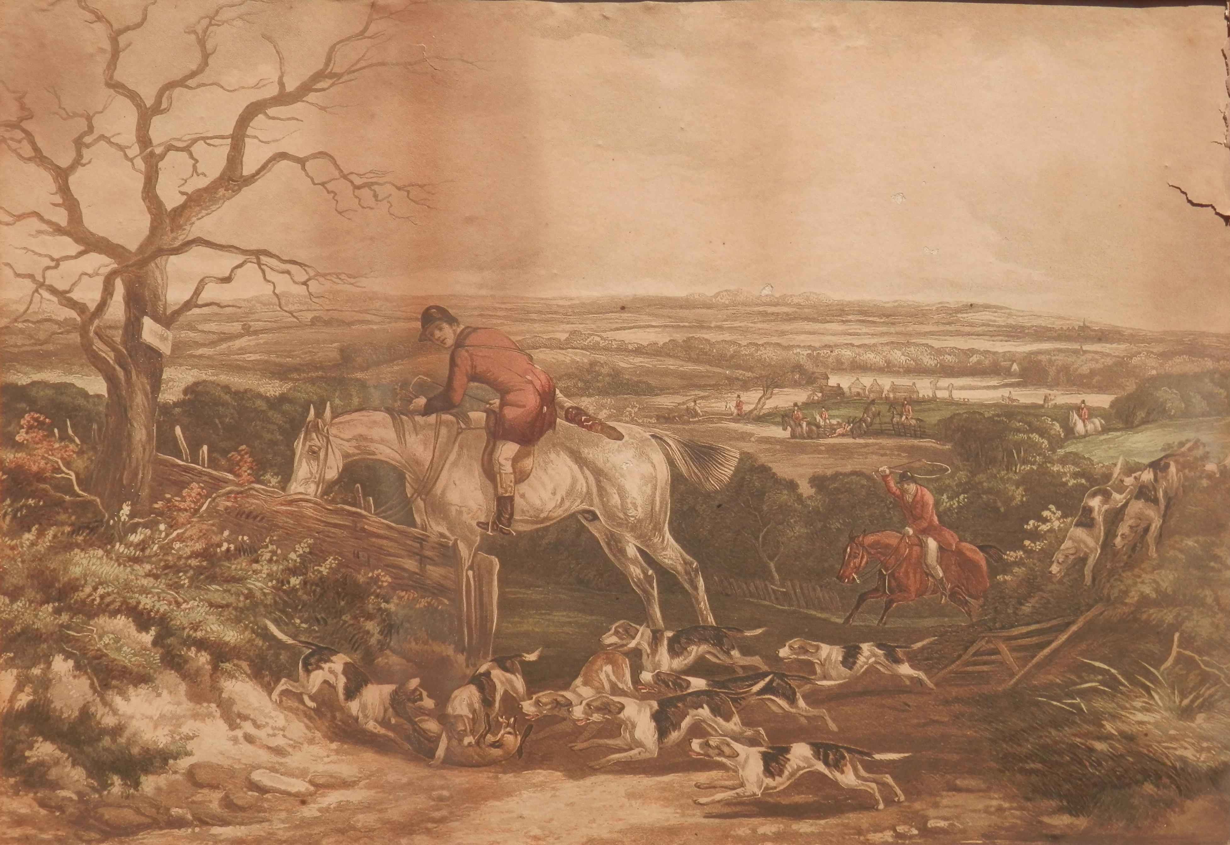 I often buy pieces which are not perfect. They have been damaged in some way. They may have age spots or imperfections in the paper or water stains. To others they are lessened but I try to look past the imperfections to what once was. Today two aquatint hunting scenes which have been injured through time.