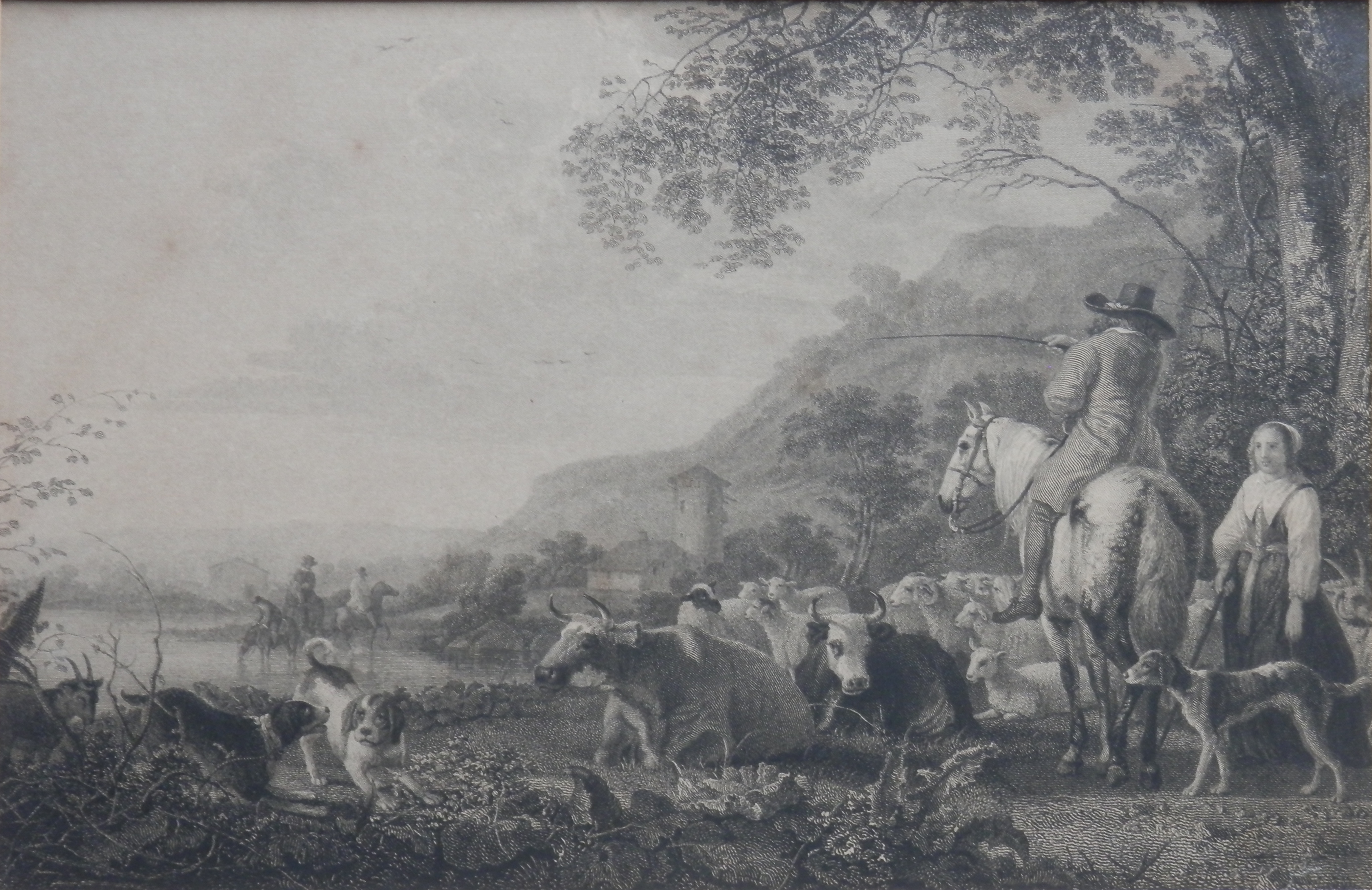 And to finish, a pastoral coastal scene. Once again done by an unknown hand but from a painting by Albert Cuyp. Etched around 1838.