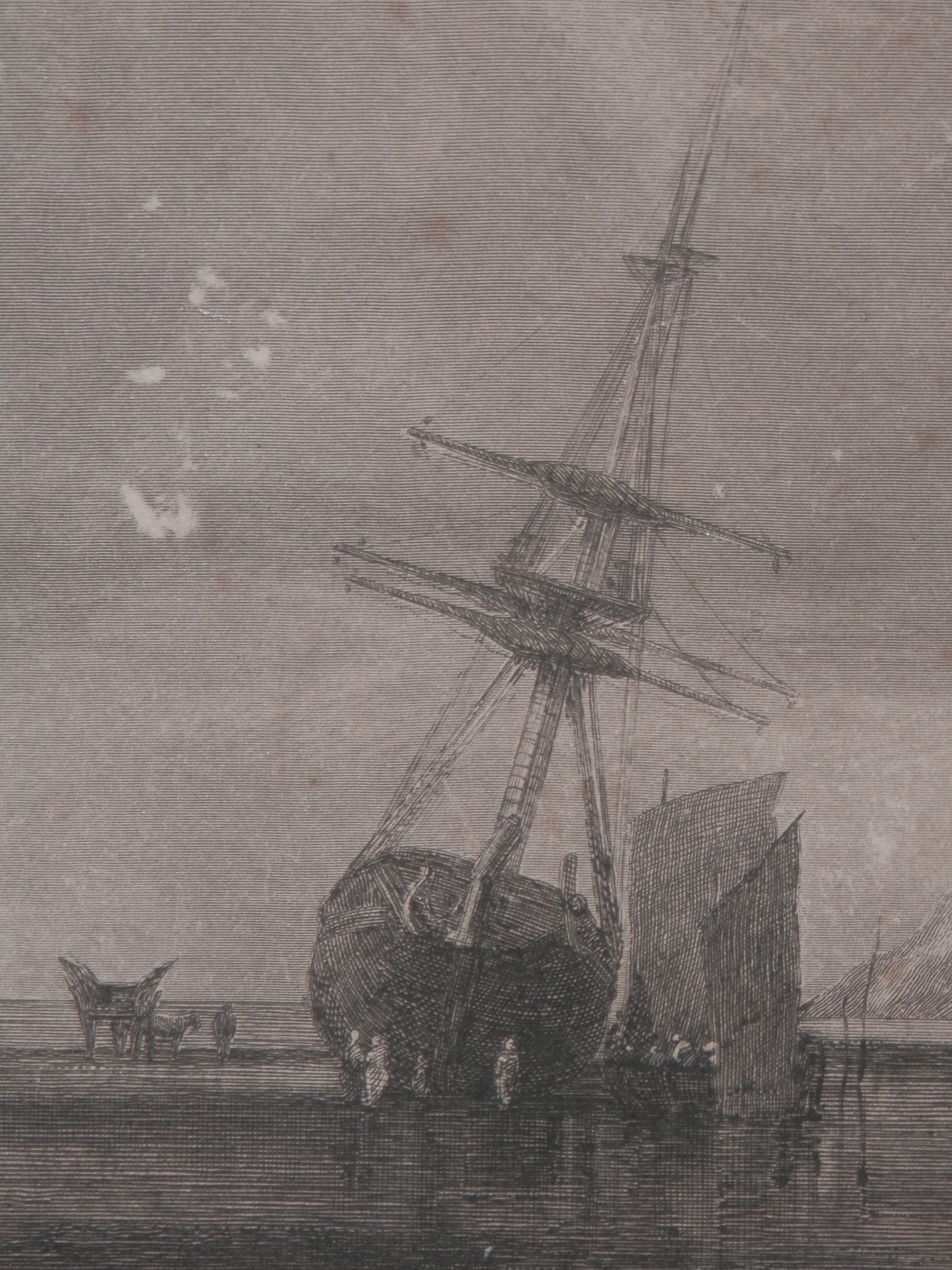 The etchings today are of the sea as viewed from the shore. A stormy sea, a shipwreck, low tide, and a calm coastal scene done by different artists.
