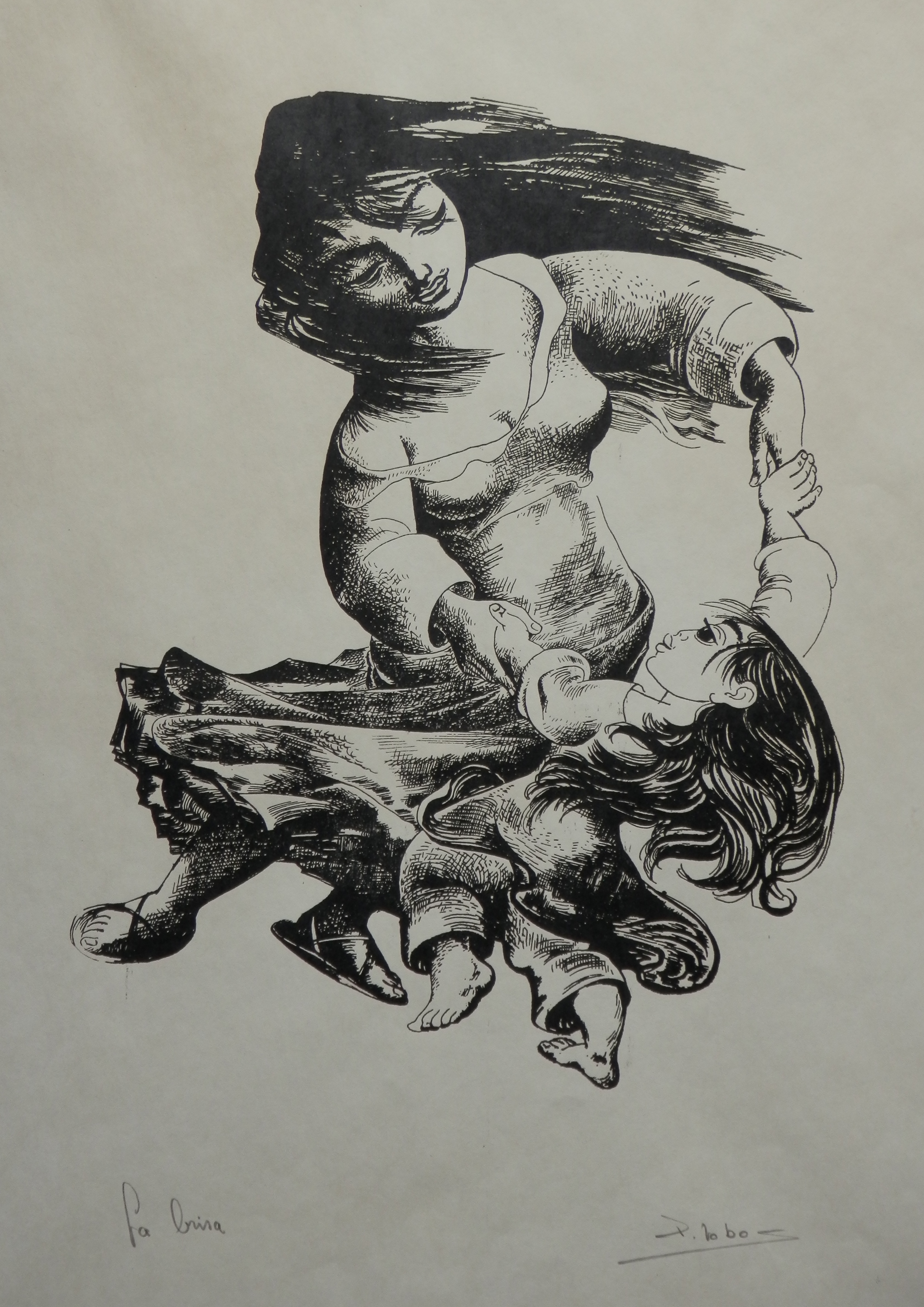 Pedro Lobos is described as a painter of the childish joys of the people and of the poor children of big sad eyes. This is certainly true of the two prints in my collection. A man of immense talent and vision. A man who loved the people he portrayed. It shows in his work.