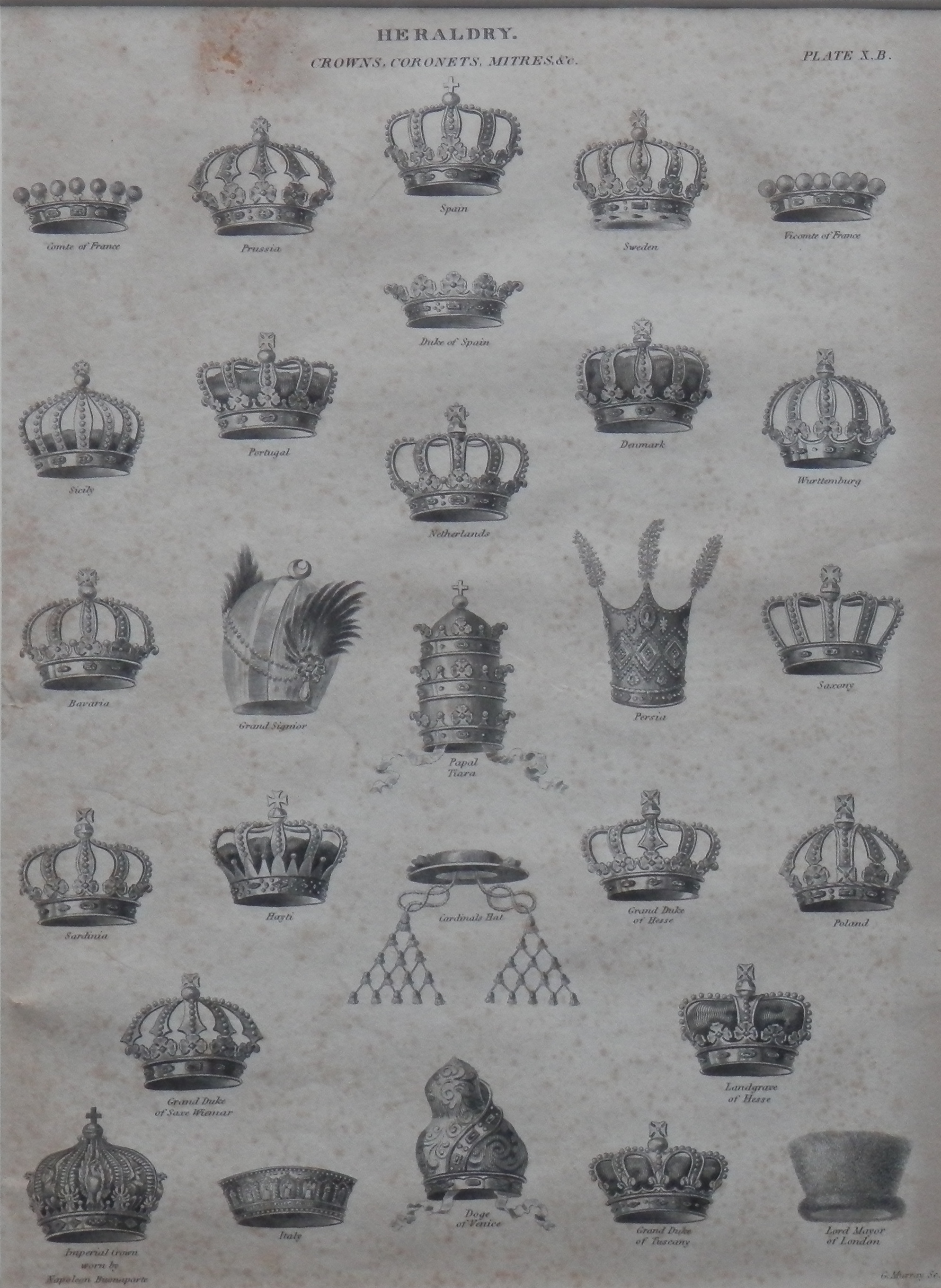 Now to two images which will be of interest to all ‘royal’ watchers out there. Two pages (plates X and XB) from ‘The Cyclopaedia’ by #AbrahamRees printed in 1819. The pages display the Crowns, Coronets, Mitres of the royal families and leadership positions of Europe.