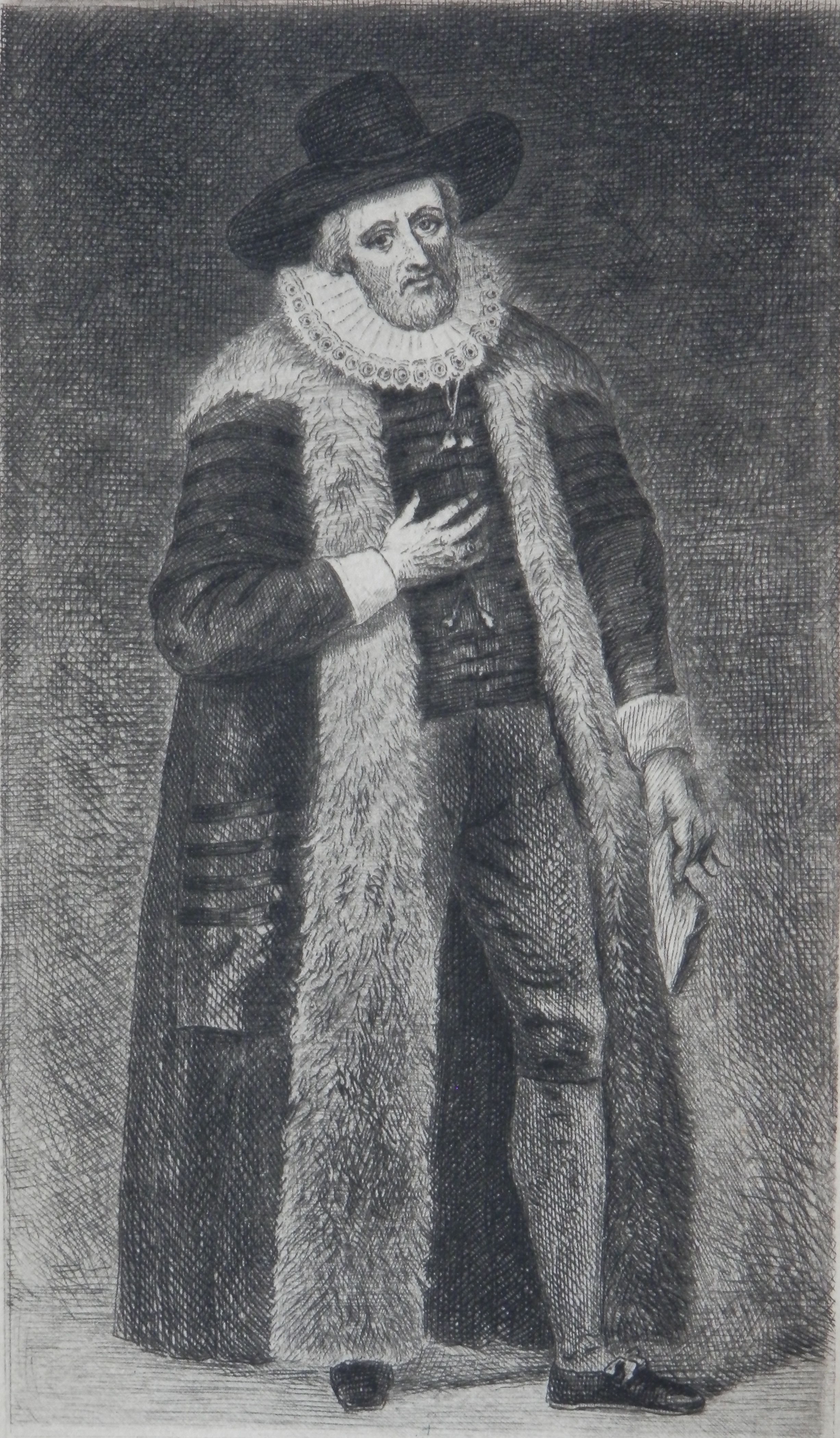 And finally to a different type of royalty. #EdwardAlleyn etched by #EtieneBocourt. Mr. Alleyn was ‘King of the Boards’. Of his early career little is known but by 1585, he was rated the foremost actor of his time. Lead roles in plays by Marlowe, Greene, and Kyd were his. He retired in 1598 at the height of his career. Queen Elizabeth was such a fan that she requested his return to the stage. He complied but not until 1604 a year after her death. He is remembered not only for his prowess as an actor but also for the founding of Dulwich College and Alleyns School.
