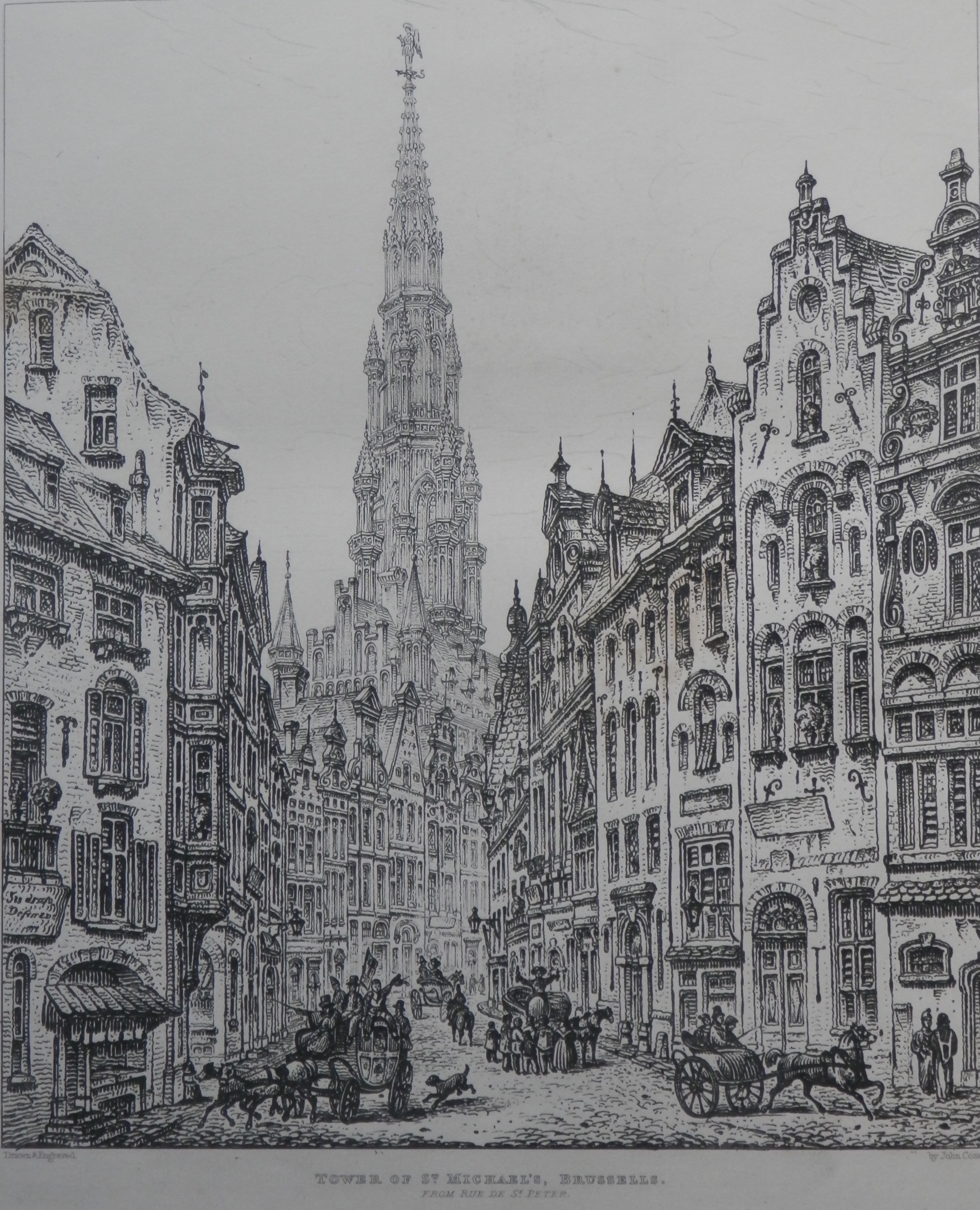 Tower of St Michael’s, Brussells etched by John Coney @ 1843