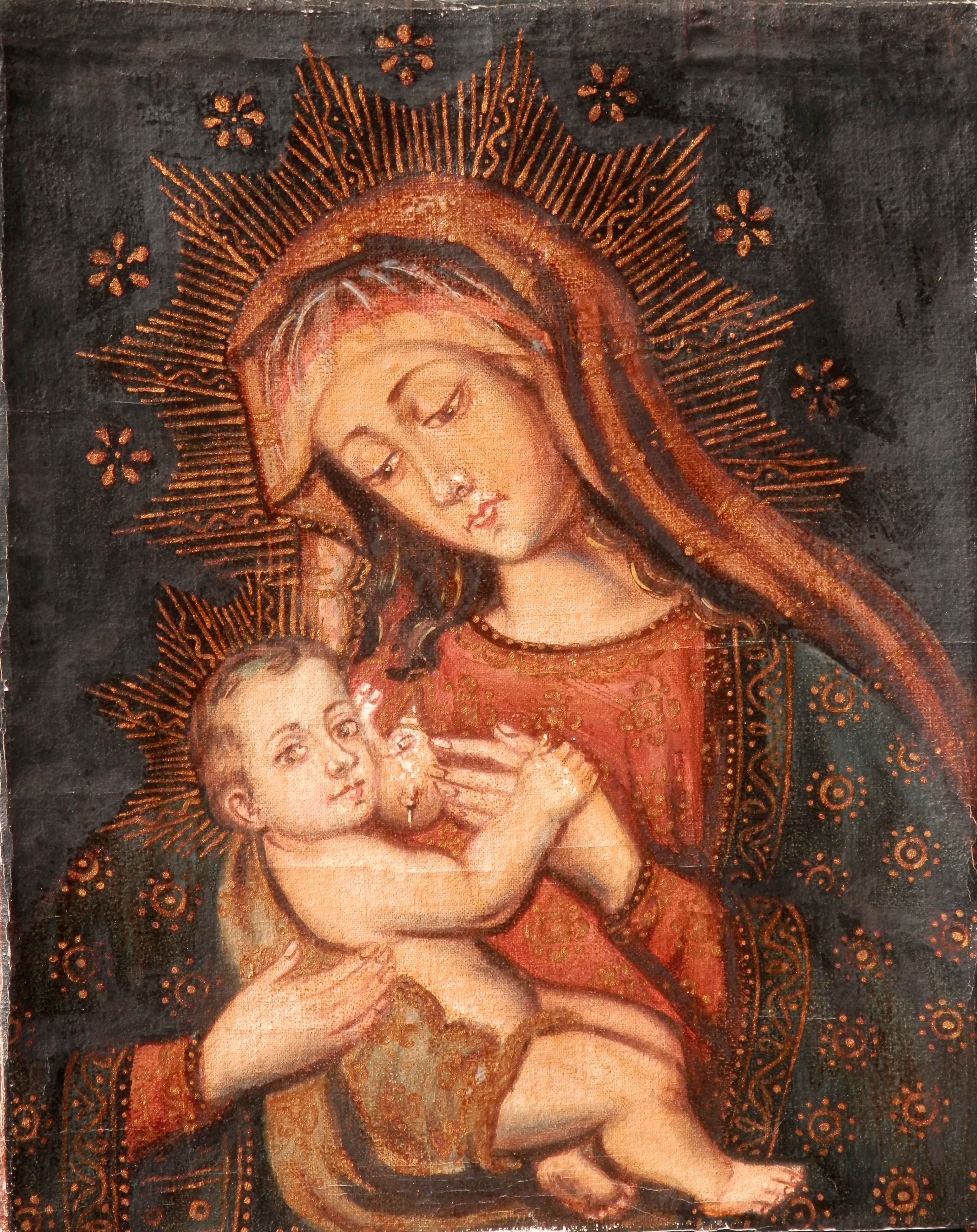 The resulting art had exclusively religious subjects. Perspective was generally lacking and the use of reds, yellows, and earthy colours predominates in the works. They are also notable for the lavish use of gold leaf,especially with regards to images of the Virgin Mary. The works were freer than those of their European tutors with the use brighter colours and distorted, dramatic images. They adapted depictions to include their native flora and fauna as a backdrop. As can be seen ‘warrior angels’ often in Spanish regalia became a popular motif in the #Cusquena paintings.