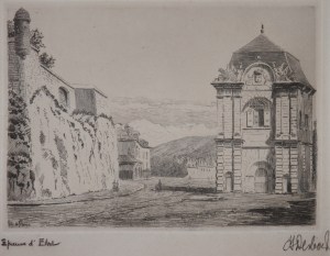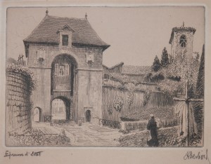 The second etching (by the same artist) is of #PorteSaintLaurent. Both etchings read Epauvre d’Etat (test state or proof). The etchings are quite finely produced and are architecturally accurate. If anyone can decipher the name or recognises the artist signature please let me know so that I can give proper credit to this talented artist.