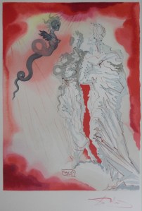 The two pieces in my collection are an etching of ‘Don Quixote – El Cid- Cervantes’ and a woodcut ‘The Black Devil – Canto 21 – Hell – The Inferno – The Divine Comedy – Dante’ . Both reveal his uniquely creative and imaginative style.
