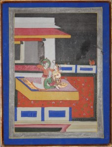 A rather odd thing in regards to Mughal painting is that they were usually a collaborative effort between a number of artists. The first artist would decide the overall composition, the second would paint what the first envisaged, and a third would focus on the portraiture- executing each and every face shown. Mughal art was generally secular, being illustrations to historical and/or literary works, portraits of royals and their courts, natural life and genre scenes.