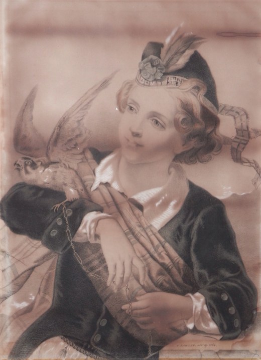 So, discovery number one. It is an artist rendering. Next, the boy has a falcon. Falconry was an aristocratic sport when this picture was done, 1862. We might deduce from that that the young man is an aristocrat. The young man is wearing Scottish garb. Thusly either Scottish or British royalty. The tam which adorns his head is a #Balmoral ribboned and the tartan we wears could be a royal tartan although without colours I am not sure. Now, if we do suggest that the young man is a royal and possibly at Balmoral, who might he be. In 1862 that royal would have to be Albert Edward, Prince of Wales. Later to be #KingEdwardVII. He is grandfather to our present queen. I have looked at images of Albert Edward and am convinced I am correct in naming the young man pictured as #AlbertEdward,PrinceofWales. There is also a clue in the picture which may mean nothing but I think it a cheeky clue to insert. The chain which is tethering the falcon is an ‘albert’ chain.