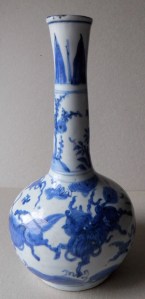 I certainly am not knowledgable enough in the area of Chinese porcelain and it is not something that I regularly collect but every once in a while I come across a piece that catches my eye. Such is the case with this piece of Kangxi (1662 – 1722) porcelain – I think. The blue colour is derived from cobalt oxide which is then painted onto a white clay. It then is covered by a clear glaze and baked in a kiln oven at very high temperatures.