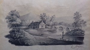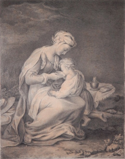 They span from a 20th century Cornwall? coastal scene to a 19th century Welsh?landscape to an 18th century ( maybe earlier yet) portrait (Hagar and Ishmael) – all done in monochrome. Each trying to invoke some response from the onlooker. They all display excellence but the last is still possibly one of the best pieces of art that I own.