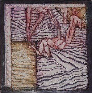 The painting from which this set of six etching states is taken from is entitled ‘Bathing’. It was painted in 1911 under the theme ‘London on Holiday’ for the dining room of Borough Polytechnic, London. It presently hangs in the Tate, London.
