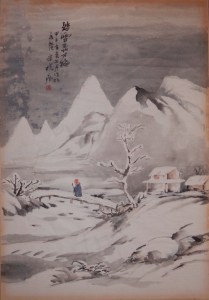 Chinese paintings are generally not framed but mounted on silk for use as hanging scroll, handscrolls, book leaves, or fans. Painters and calligraphers were well respected and usually scholars. There are four items which a scholar would have in his studio. Paper, brushes, ink, and an inkstone.