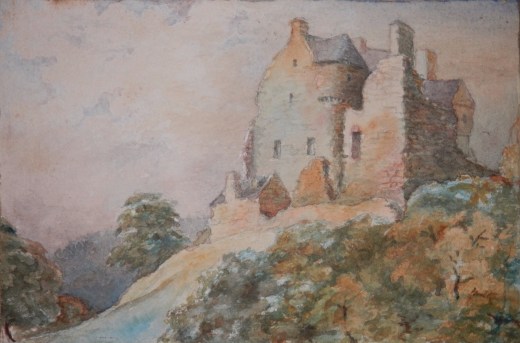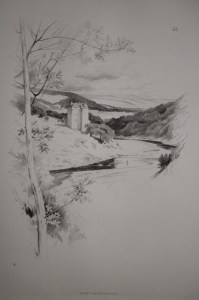 The watercolour is 19th century but I have yet to decipher the signature on the verso and the lithograph comes from The River Tweed by George Reid (1884). A place to visit next time I’m traveling north.