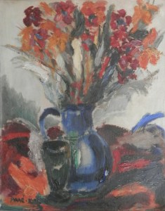 The painting, I acquired this past week, comes from his early period in which he used more somber colours. Large brush strokes laden with paint enable a three dimensional aspect to the painting which allows light and shadow to play a part in ones viewing of the painting.