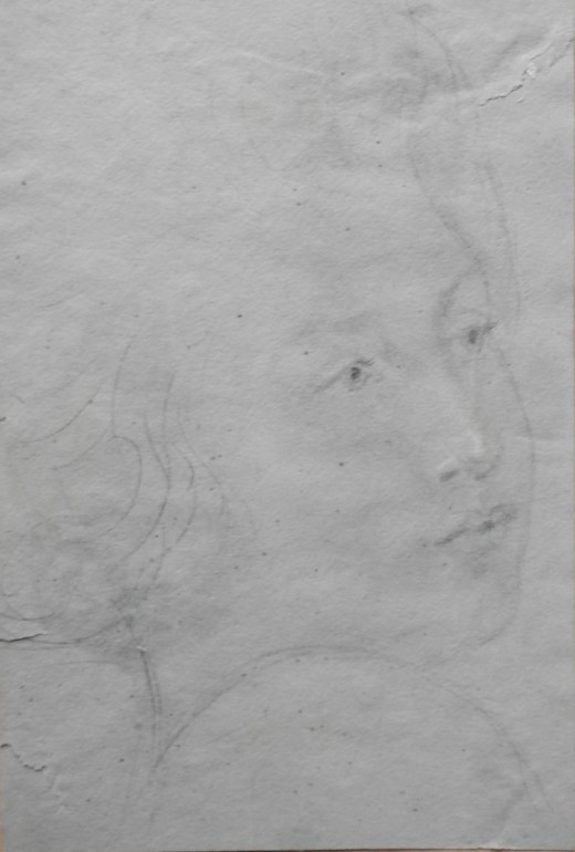 I acquired a small graphite sketch showing a woman’s portrait. It still amazes me that through so little so much can be expressed. I think he captures something in her face. The eyes and lips – finely done – with a bit of high-light on the nose and there is beauty shown. The capturing of an essence and displaying it with such ease. He certainly was a talented man.