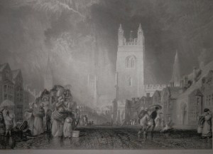 The second image is of the magnificent #ShipoftheFens #ElyCathedral. Again a first state. There is lettering at all – no credits or title – but again has the blind stamp of the Turner Studio just below the image. This plate was engraved by Thomas Higham and certainly displays Turner’s expertise as an architectural draughtsman.