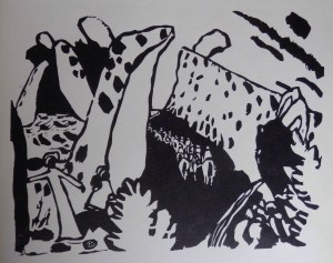 For the third volume, Kandinsky provided six #woodcuts to be reproduced – 3 in colour and 3 in black and white. Thankfully all six are to be found in the volume which I acquired. They are (as they appear in the chapter)