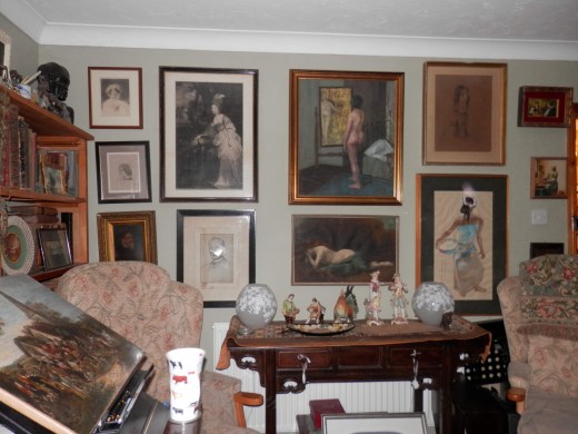 I certainly do not claim to be an interior designer in any sense and my picture walls tend to be items which I like to look at. This room has a wall which is mostly devoted to the female form and has a pair of chairs for relaxing and reading.