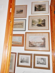 The landing and stairwell are also picture galleries (too narrow to get a nice photo of) but this shot is from the master bedroom onto the landing. Once again, I concentrate on originals but there are two prints along the bottom which bear the JMW Turner studio blind stamp ( this means that these were in Turner’s possession when he died and were bequeathed to the nation at his death). As seen, some things from that bequest have been sold into public possession.