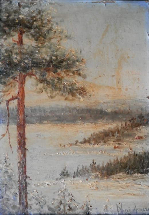 The two small oils are winter #landscapes. One showing two remote buildings in the wintry hills and the other a lakeshore in the cold of winter. They are painted by Nini #Arntzen (I think that is what the first name reads – more confident about the last name) and dated 1895. Both are finely rendered with a nice use of colour and tone. Nicely layered allowing the play of light and shadow to highlight and accentuate. They both could use a light clean which would brighten the colours somewhat. Even so, two small oils which come from a time in a countries emergence as an artistic centre in the genre from which it began – landscapes of the country itself. The heart and soul of #Norway.