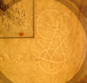 I wish to look at the watermark which lies in the bottom right corner. Like most watermarks, they are invisible until the paper is backlit. We also find the letters ‘olland‘ in the top right corner. I take it that the ‘H’ has been cut off. So the paper is from a Dutch paper mill.