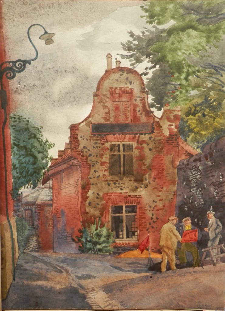 Deakins was easy-going by nature. He didn’t strive for fame. He was satisfied to be considered a capable jobbing artist. The ‘Adam and Eve’ shows, I think, that he was better than your ‘average’ artist. The feeling this painting evokes feels right – friendliness, joy, warmth, and camaraderie. Love the old locals out front.