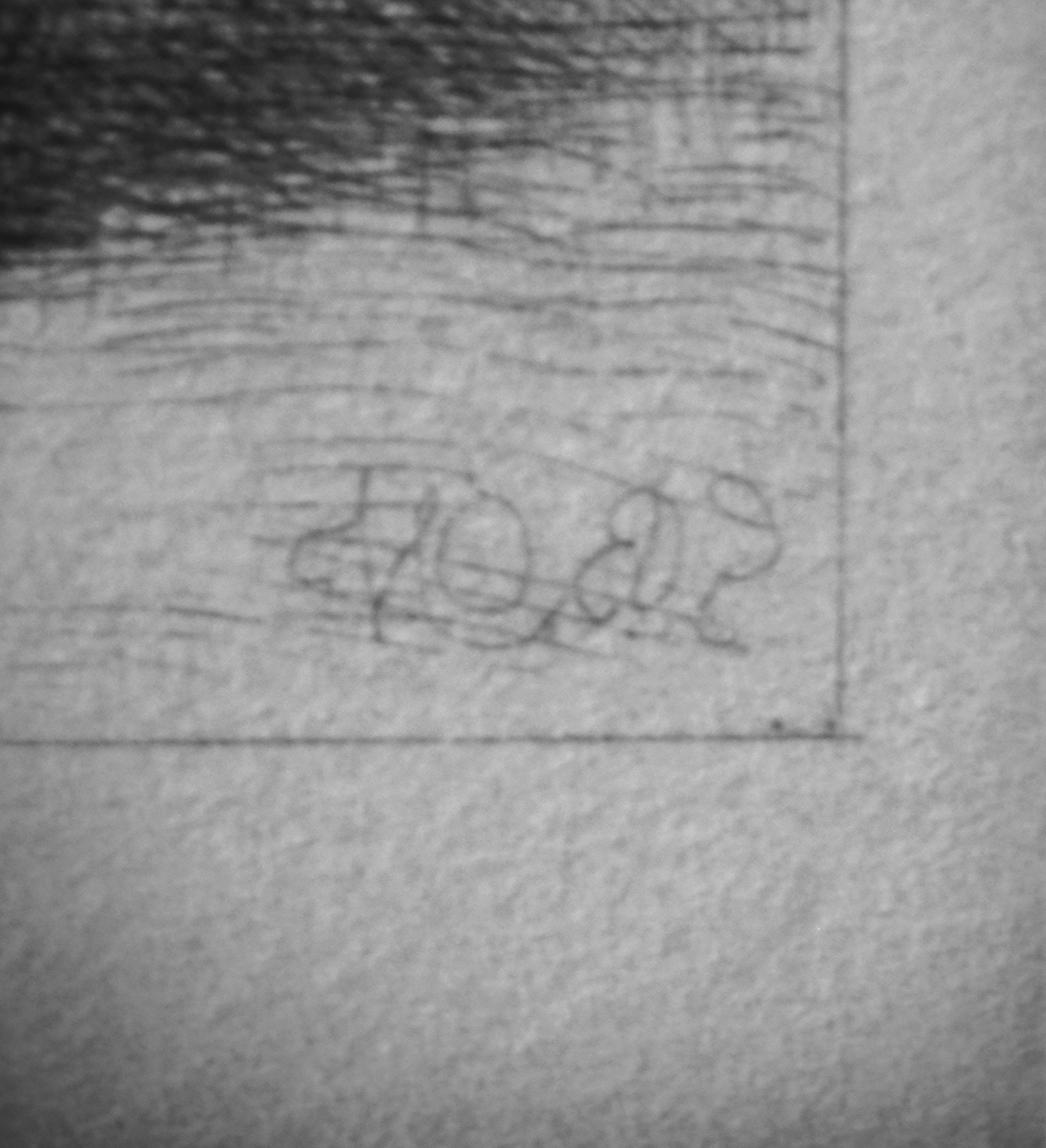 I attach an image of the signature, in the hopes that my readers might have better luck than I at deciphering the signature. In the second image, one can see the myriad of fine lines which are used the give the drawing depth and tonality. A superb #drawing, even if I don’t know who the artist is. And I can’t shake a feeling that I should know who this artist is.