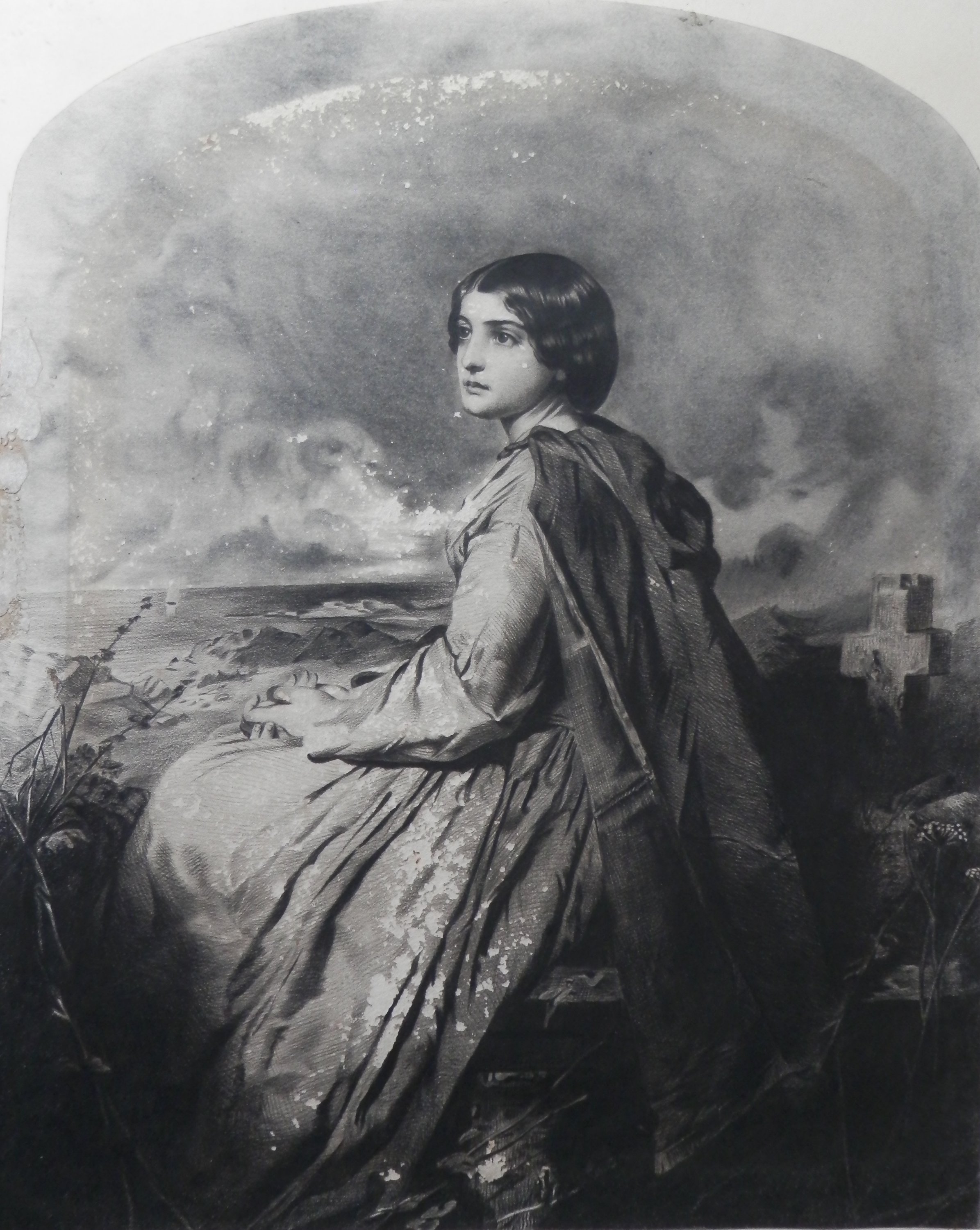 I recently purchased a drawing which I think is both artistically and historically important. The charcoal drawing is of a young woman sitting in a graveyard on the shore. The oil painting of this scene hangs in Manchester Art Gallery. The title of the piece is #Evangeline. It was drawn to #WilliamWadsworthLongfellow’s romantic poem Evangeline, A Tale of Acadie. The poem follows an #Acadian girl on her search for her love, Gabriel. It is set during the expulsion of the Acadians (1755-1764). It follows her travels across America in search of Gabriel – sometimes close, sometimes not – until they meet again after many years of separation. Evangeline, now working as a Sister of Mercy nurse in Philadelphia and an old woman, meets Gabriel during an epidemic and he dies in her arms. She later also passes. A bit of a North American Romeo and Juliet.
