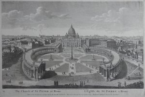 We begin with an image showing a view of the gardens and buildings of the Cortile del Belvedere at the Vatican Palace in Rome. The space was designed to link the Belvedere Court to the Vatican Palace via a series of terraces and stairs. Our next two views are not published by Laurie & Whittle. There were a number of publishers at the time which also held vue d’optique in there production books. Three of those were #RobertWilkinson, #RobertSayer, and #CarringtonBowles.