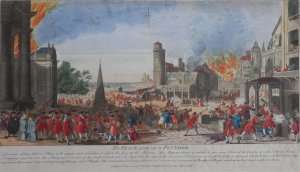 These depict Rome at its’ beautiful best. Sites as the Trojan Arch, the Tomb of Cestus, the Imperial Palace, the Senate House, the Egyptian Obelisk, and the Temple of Fortune appear in these two views. Again all are hand coloured and show their age in one way or another. We look at another pair published by Laurie & Whittle. These show events rather than specific sites.