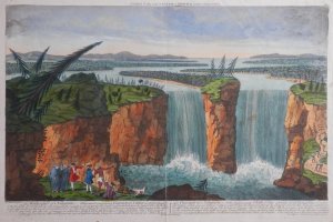 The magnificent Niagara Falls. A place that certainly most who would view this print would never have seen in person. A written description in English and French appears at the bottom of the image.