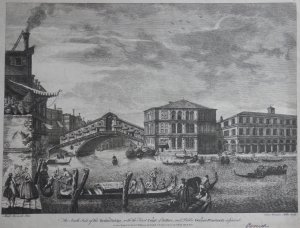 We return to Rome for a view of The Church of St Peter published by Bowles & Carver. The piazza and basilica are wonderfully portrayed here. The last, a plate published by Robert Wilkinson shows the stunning Rialto Bridge in Venice as it crosses over the Grand Canal at its’ narrowest point. I appreciate that these final two have not been coloured.