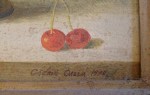 The painting is a still-life. The artwork is signed and dated 1990. The pottery in the work is certainly typical of that produced in the Ukraine. I do not know what the other symbols such as the flowers, wren and fruit mean if they are symbols at all.