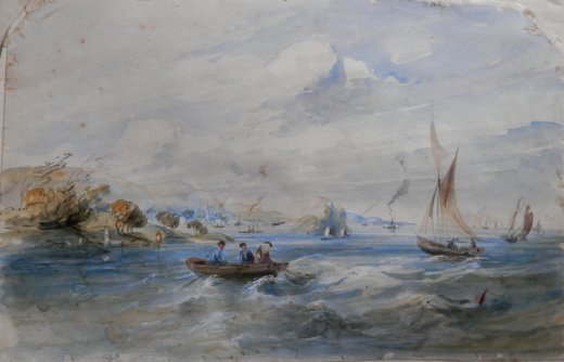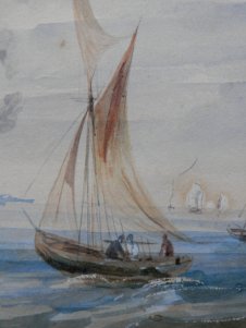 How does one achieve a sense of motion or movement in a painting. Today we look at a small watercolour I acquired last week which I think does achieve this. It is a coastal scene showing fishermen, boats, and steam drifters off a nearby coast.