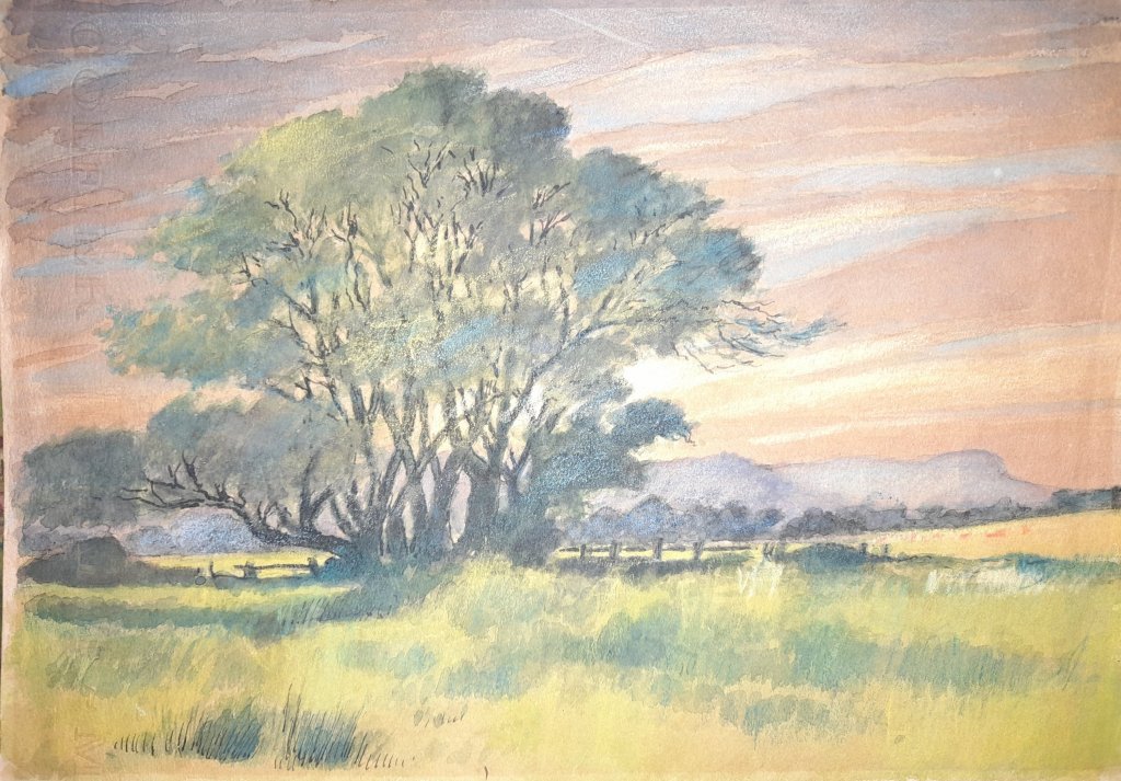 We will begin with a landscape which displays a copse of trees standing alongside a wooden fence with some hills in the background. It is a nice image but not truly anything spectacular. It has interest not for its image but more for the watermark. This paper was made by #SaintMontgolfier. The family Montgolfier (two brothers) began making paper in the 18th century. The brothers are more famous for inventing the hot-air balloon. Over time the company merged to become Canson and Montgolfier – one of the greatest paper-makers in history. Used by artists and all who love supreme quality papers. The company continues to make paper and adapts itself to modern day requirements.